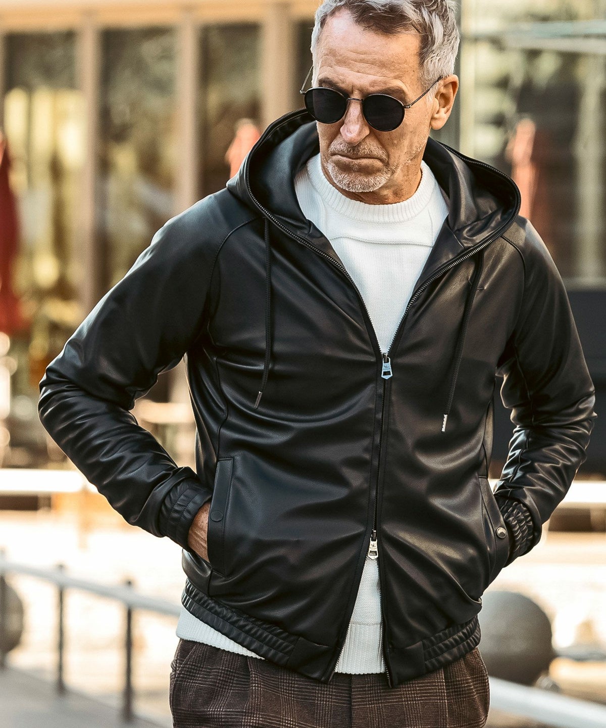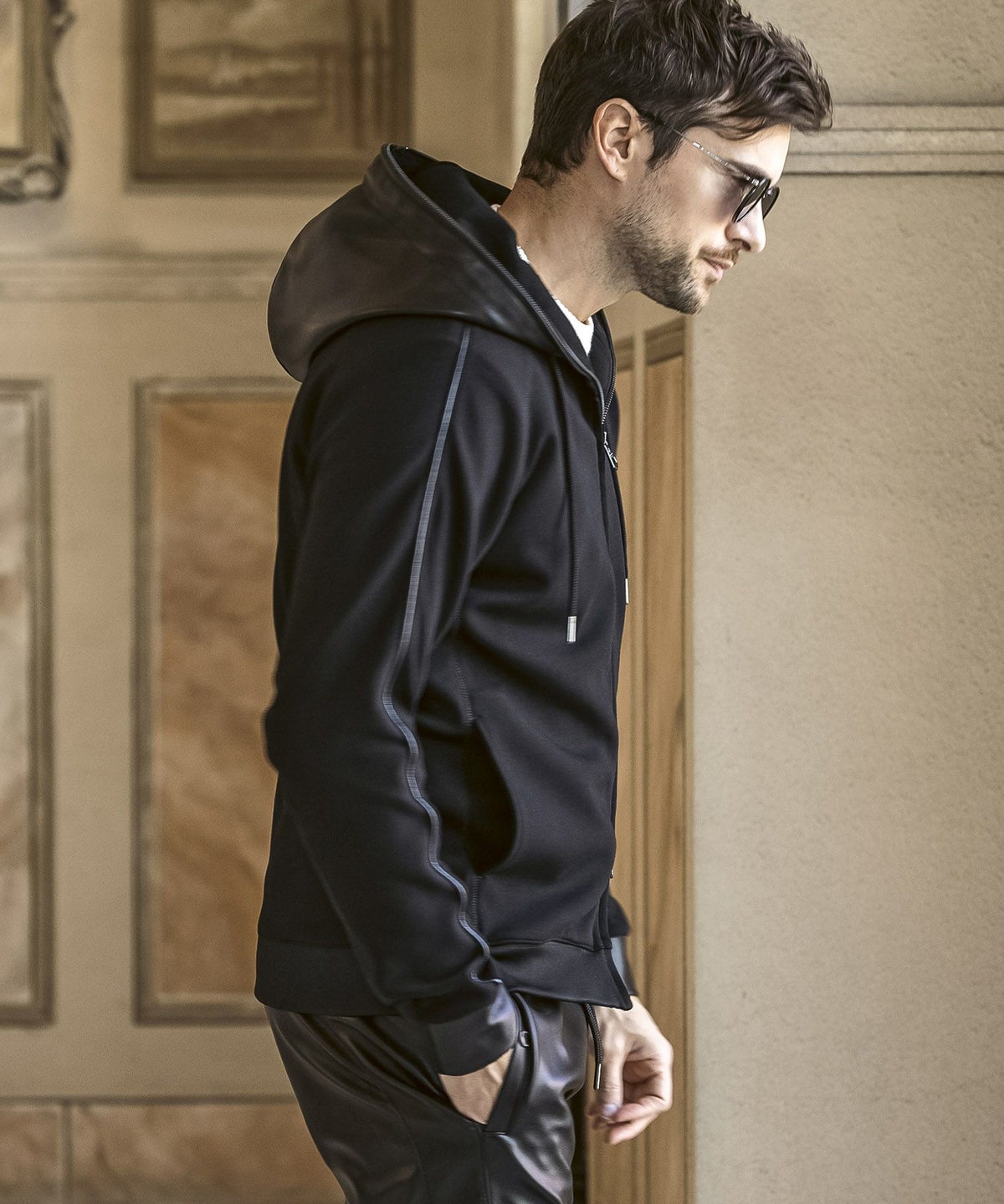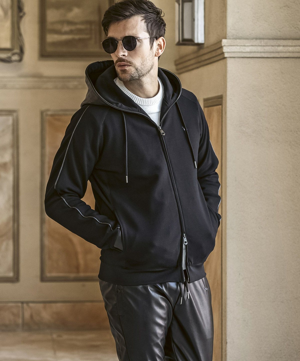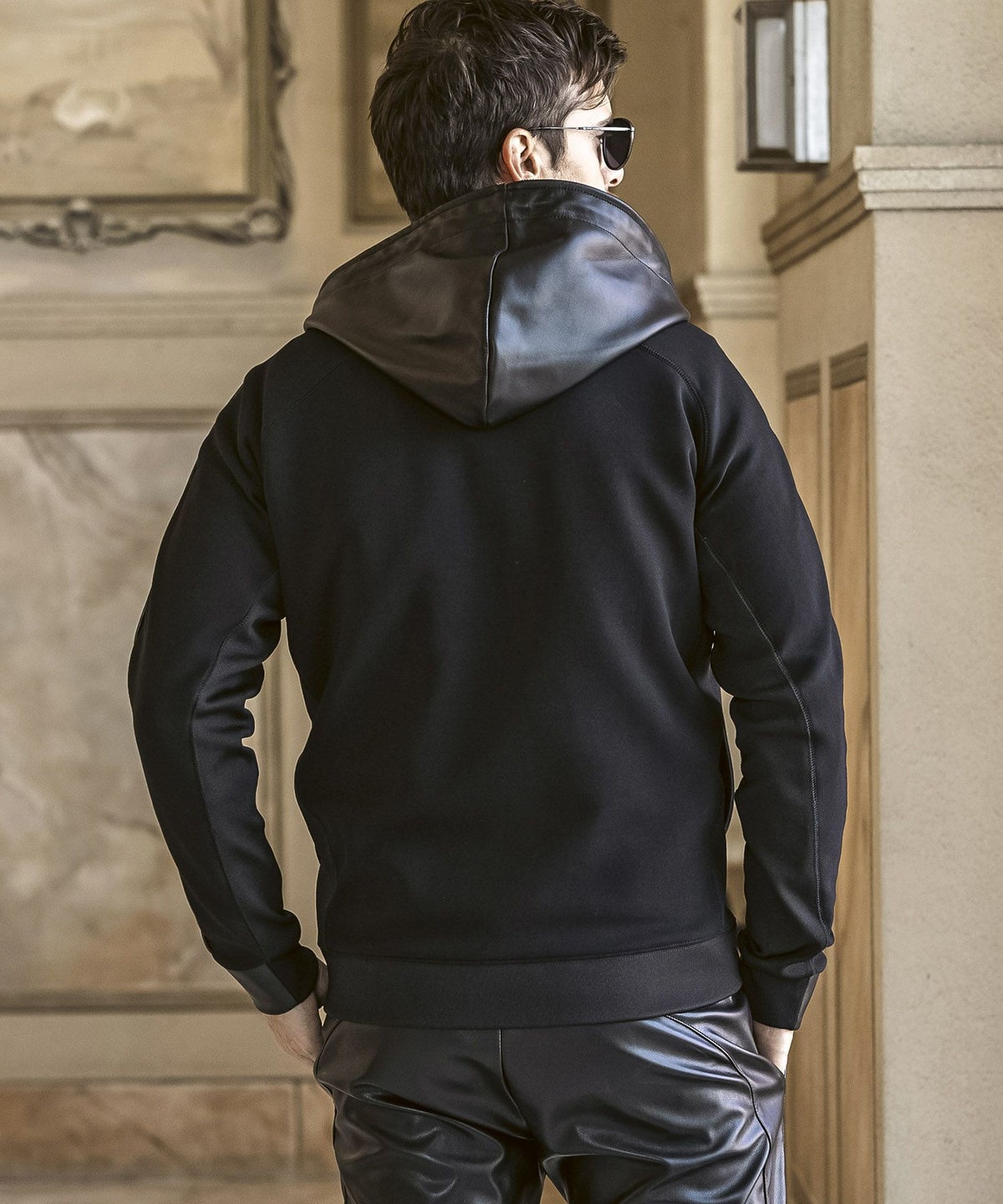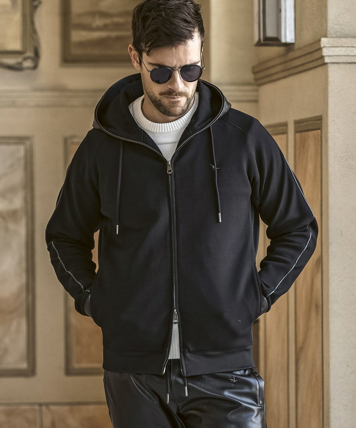 1PIU1UGUALE3 RELAX(ウノピゥウノウグァーレトレ リラックス)レザーコンビネーションジップアップパーカー