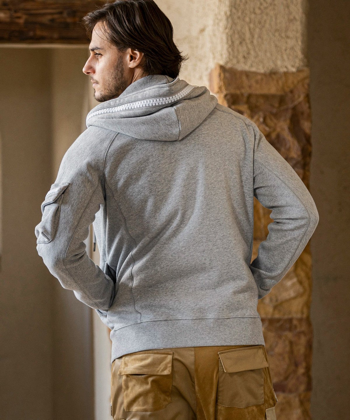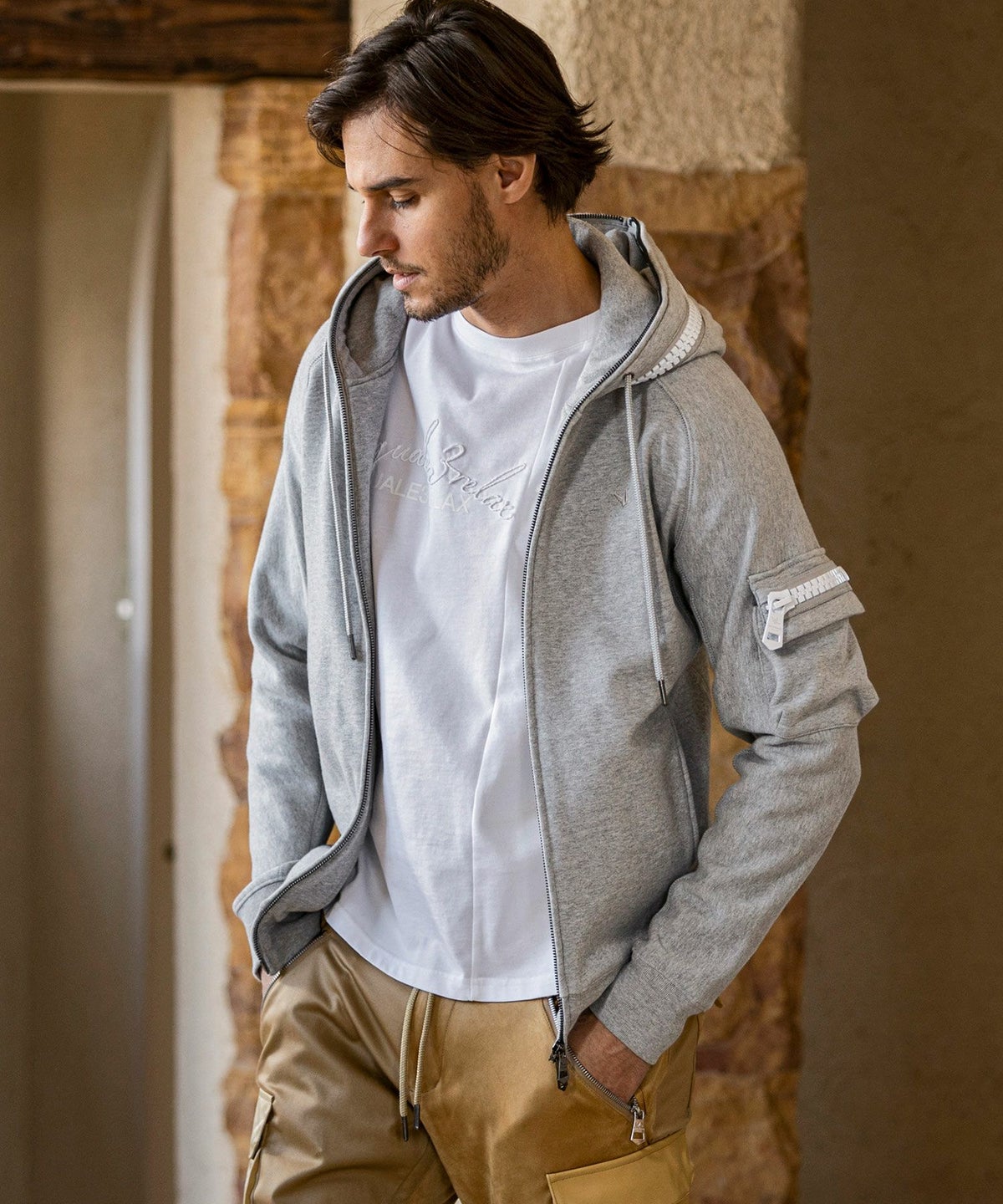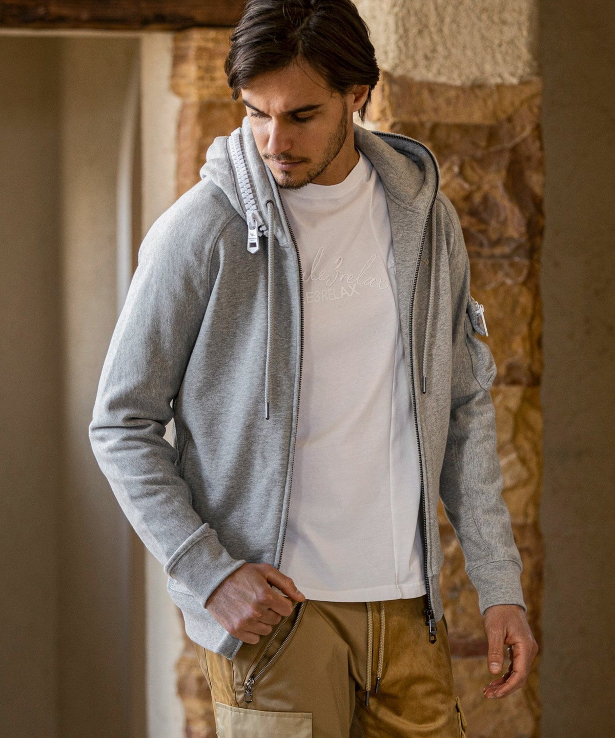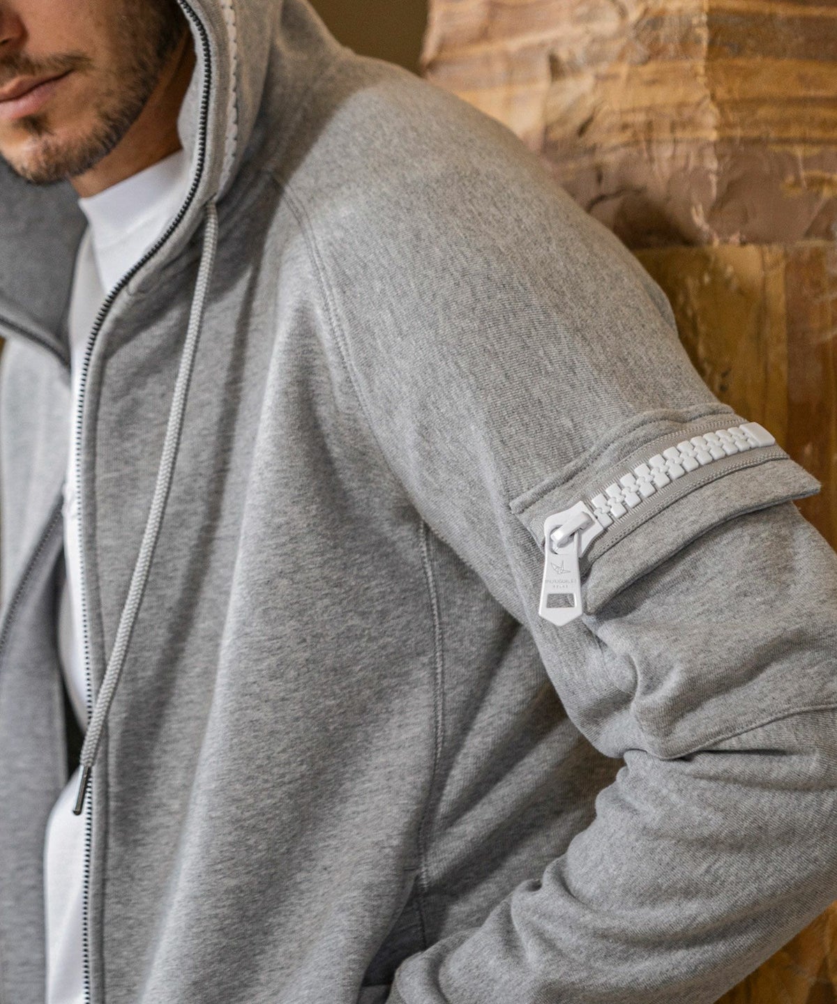 1PIU1UGUALE3 RELAX(ウノピゥウノウグァーレトレ リラックス)レザーコンビネーションジップアップパーカー