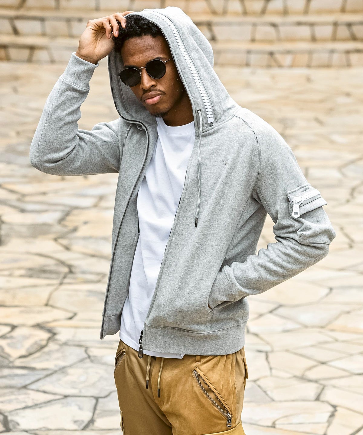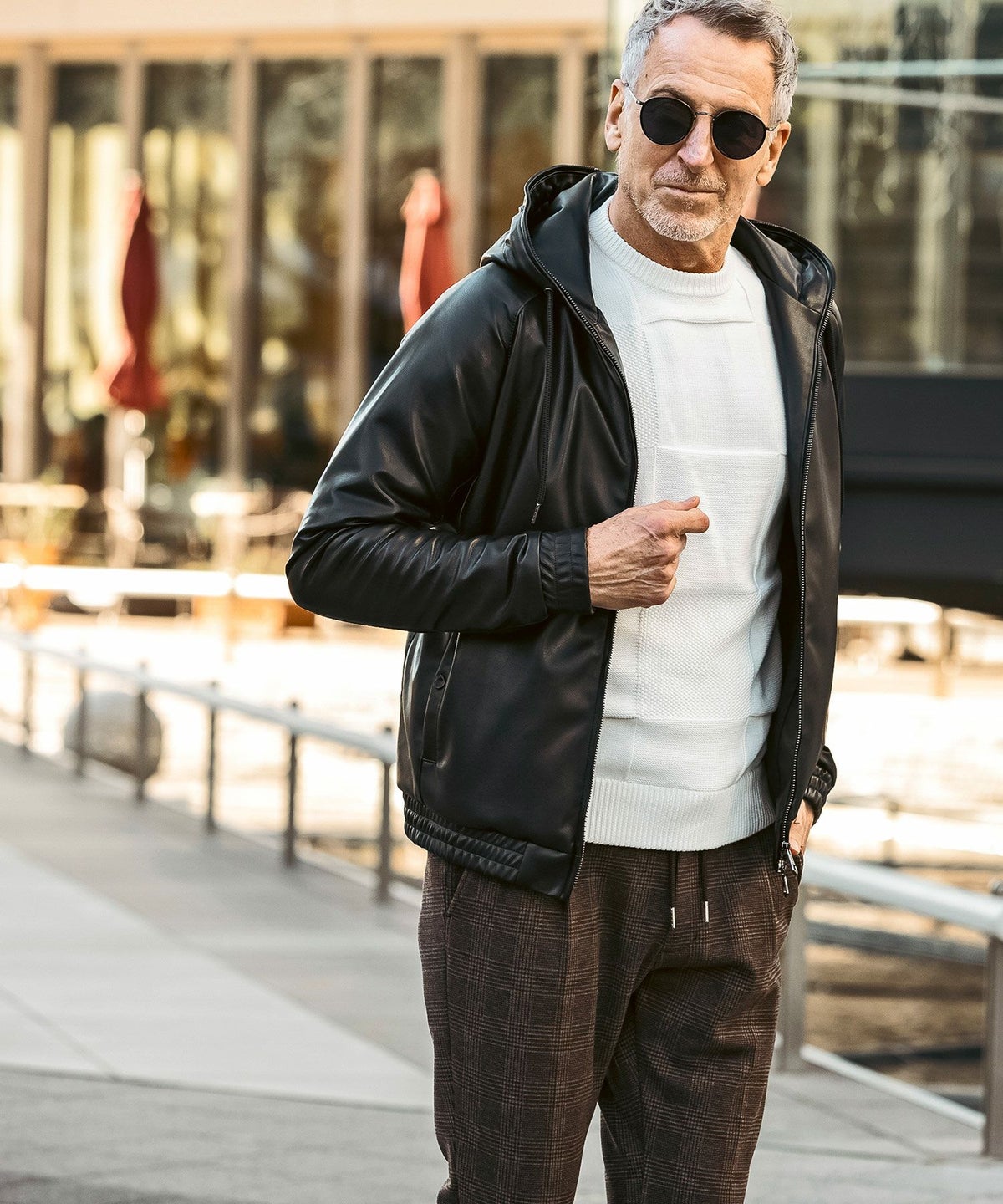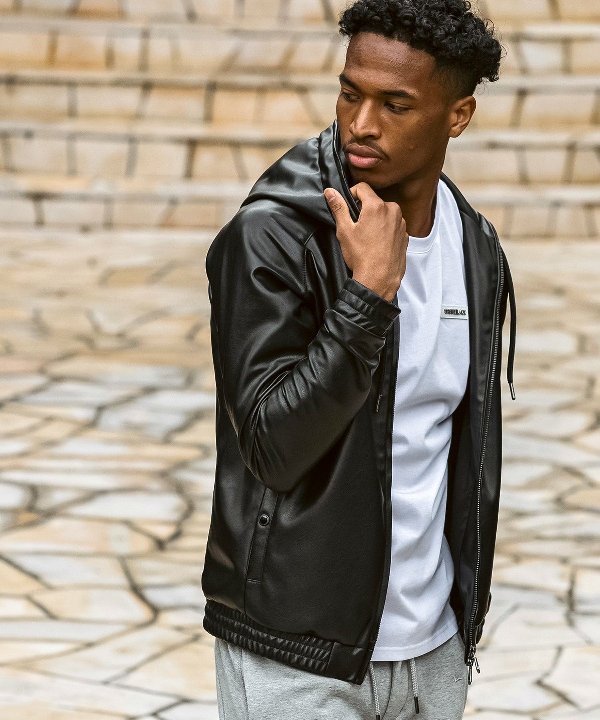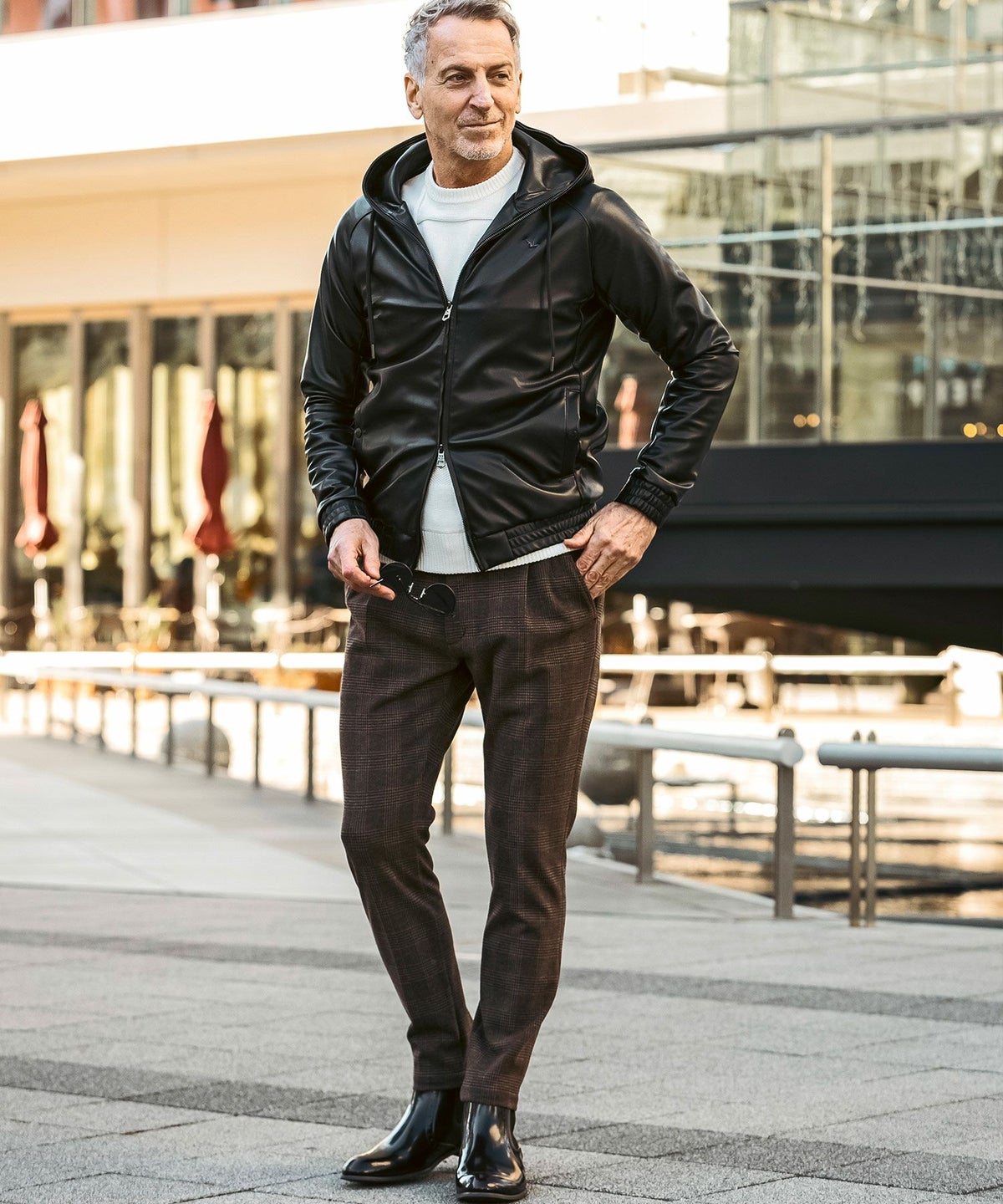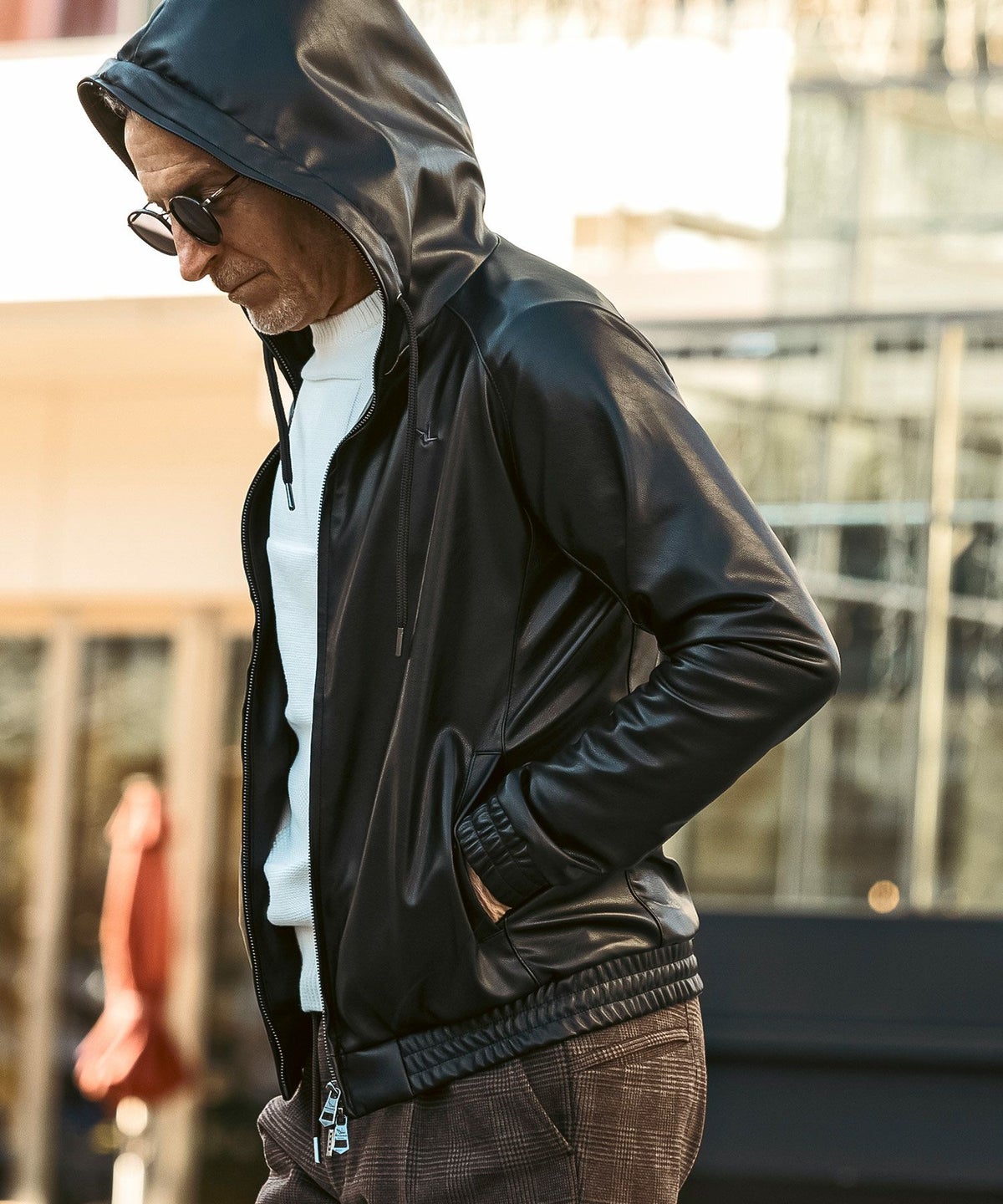 1PIU1UGUALE3 RELAX(ウノピゥウノウグァーレトレ リラックス)レザーコンビネーションジップアップパーカー