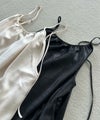 艶やかなチンツ素材を使用した、キャミソールワンピース。