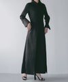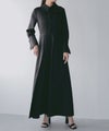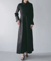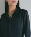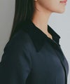 襟部分には質感の異なるマットなサテン生地を使用し、顔まわりに上品なアクセントをプラス。