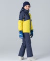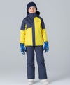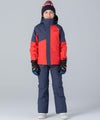 アシンメトリーな色使いが印象的な、個性あふれるジュニア用スキーウェア上下セット。