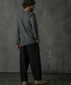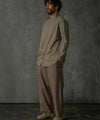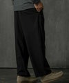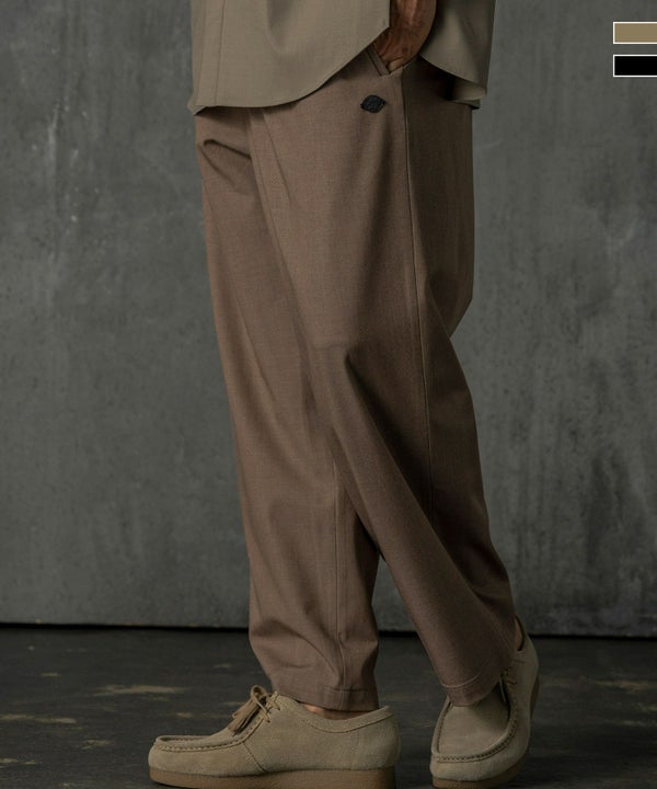 フラットなフロントタックとワイドな落ち感のあるシルエットは、動きやすさと快適さを追求。