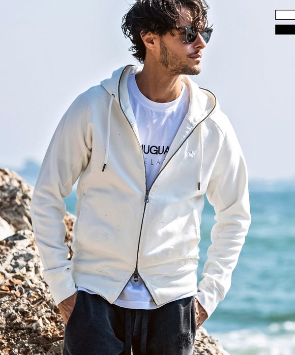 1PIU1UGUALE3 RELAX(ウノピゥウノウグァーレトレ リラックス)ダメージジョグデニムパーカー