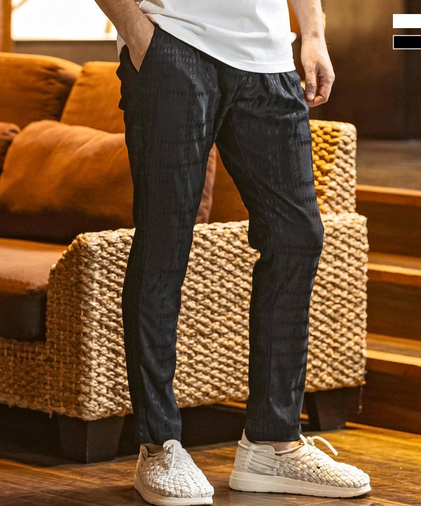 1PIU1UGUALE3 RELAX(ウノピゥウノウグァーレトレ リラックス)ランダムハウンドトゥースジャガードスラックス