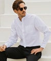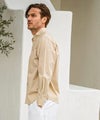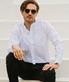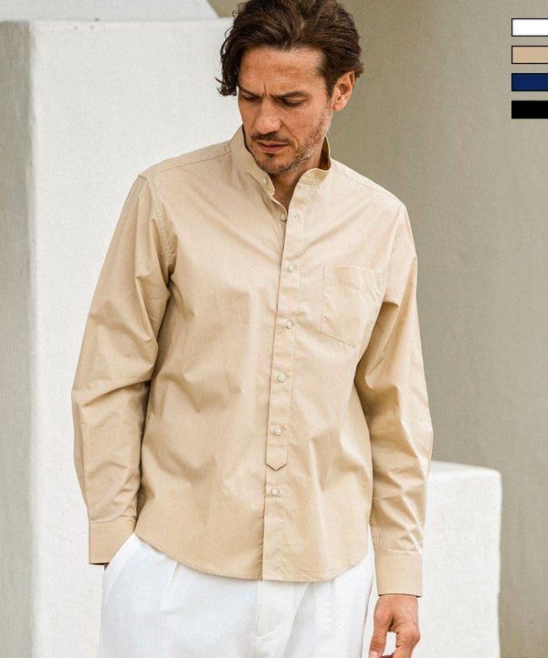 上品さと抜け感を兼ね備えるバンドカラーシャツ。