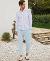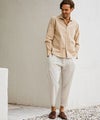 ボタンにはブランドロゴを刻印し、細部にまでこだわりを感じさせるポイントに。