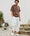 Tシャツのような軽快さを持ちながら、スキッパー仕様の首元が印象を引き締め。