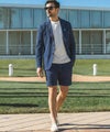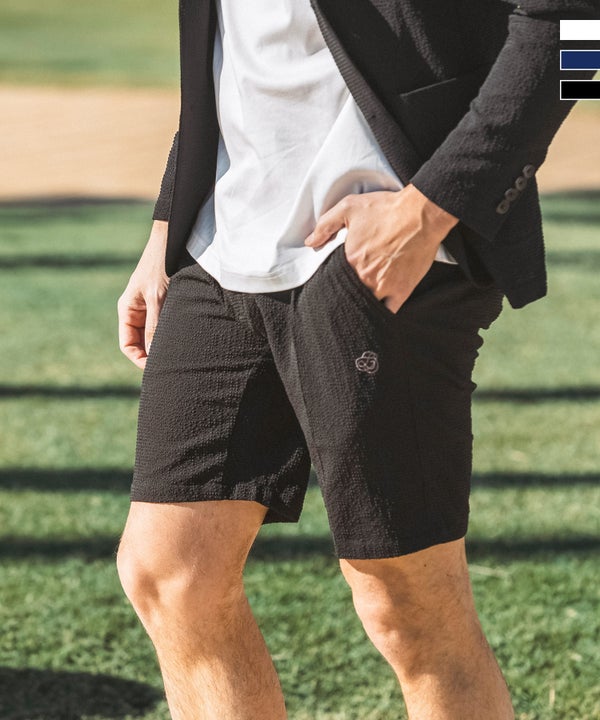 ストレッチ性と通気性に優れたシアサッカー素材を使用したショートスラックス。