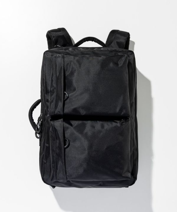 撥水加工を施した「コーティングポリエステルオックス」を使用した、機能性とスマートな印象を兼ね備えた2WAY仕様のバックパック。