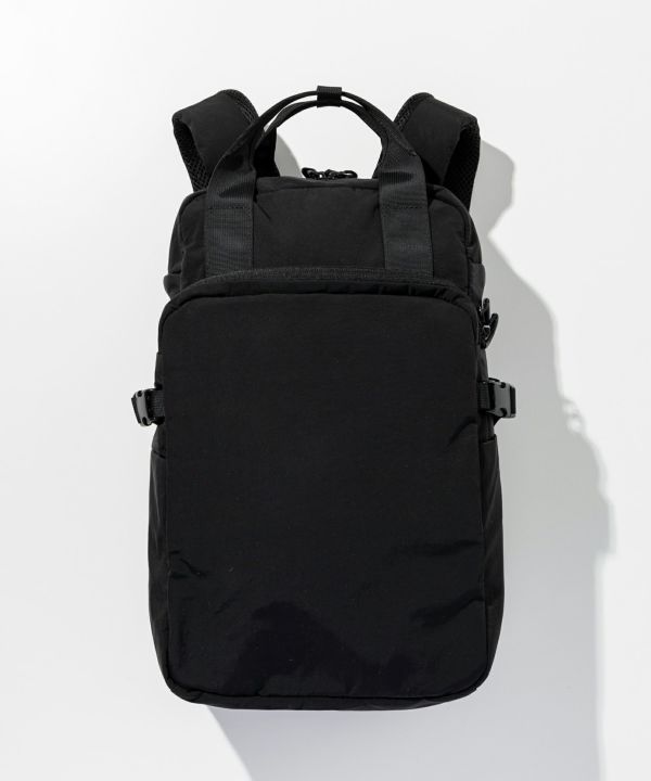 撥水加工を施した「コーティングナイロンタスラン」を採用した、軽快さと機能性を兼ね備えたバックパック。