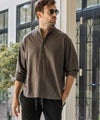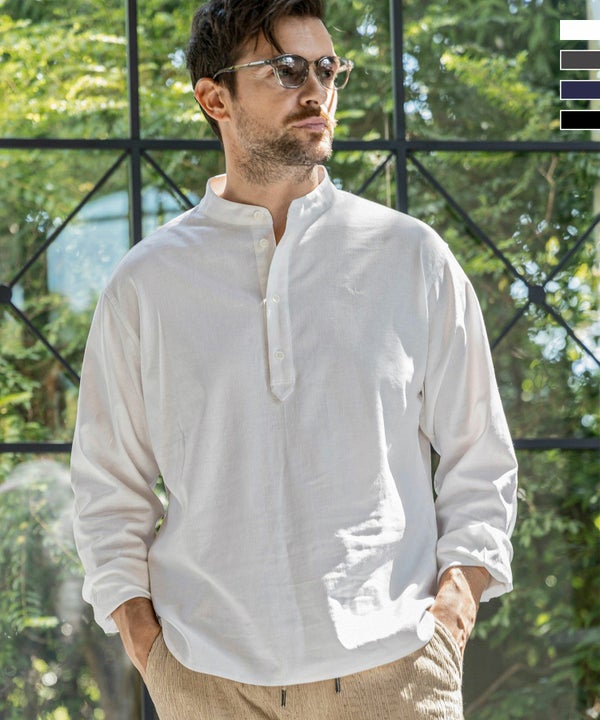 1PIU1UGUALE3 RELAX(ウノピゥウノウグァーレトレ リラックス)リネンブレンドバンドカラーヘンリーネックシャツ