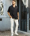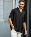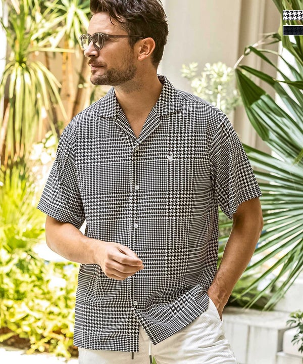 落ち感のあるとろみ素材で仕立てたアロハテイストの半袖開襟シャツ。