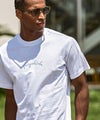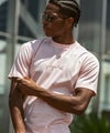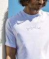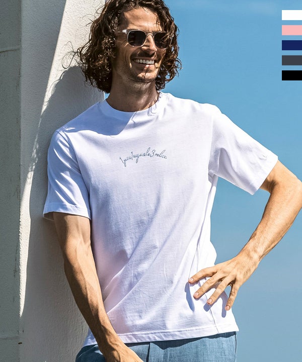 フロントに人気の筆記体調ロゴを配置した半袖カットソー。