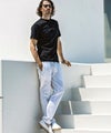 1PIU1UGUALE3 RELAX(ウノピゥウノウグァーレトレ リラックス)ラインストーンカーシヴロゴ半袖Tシャツ