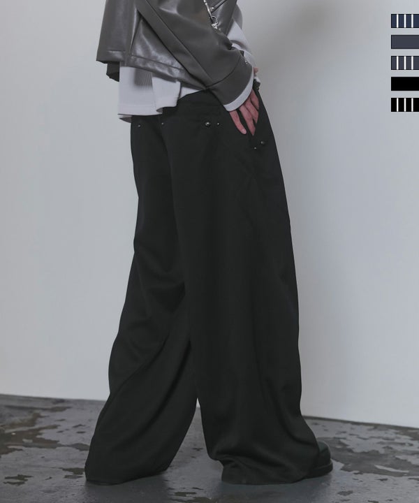 穿くだけでモードが完成する、ドレープとスタッズが織りなす最旬カーブシルエットスラックス。