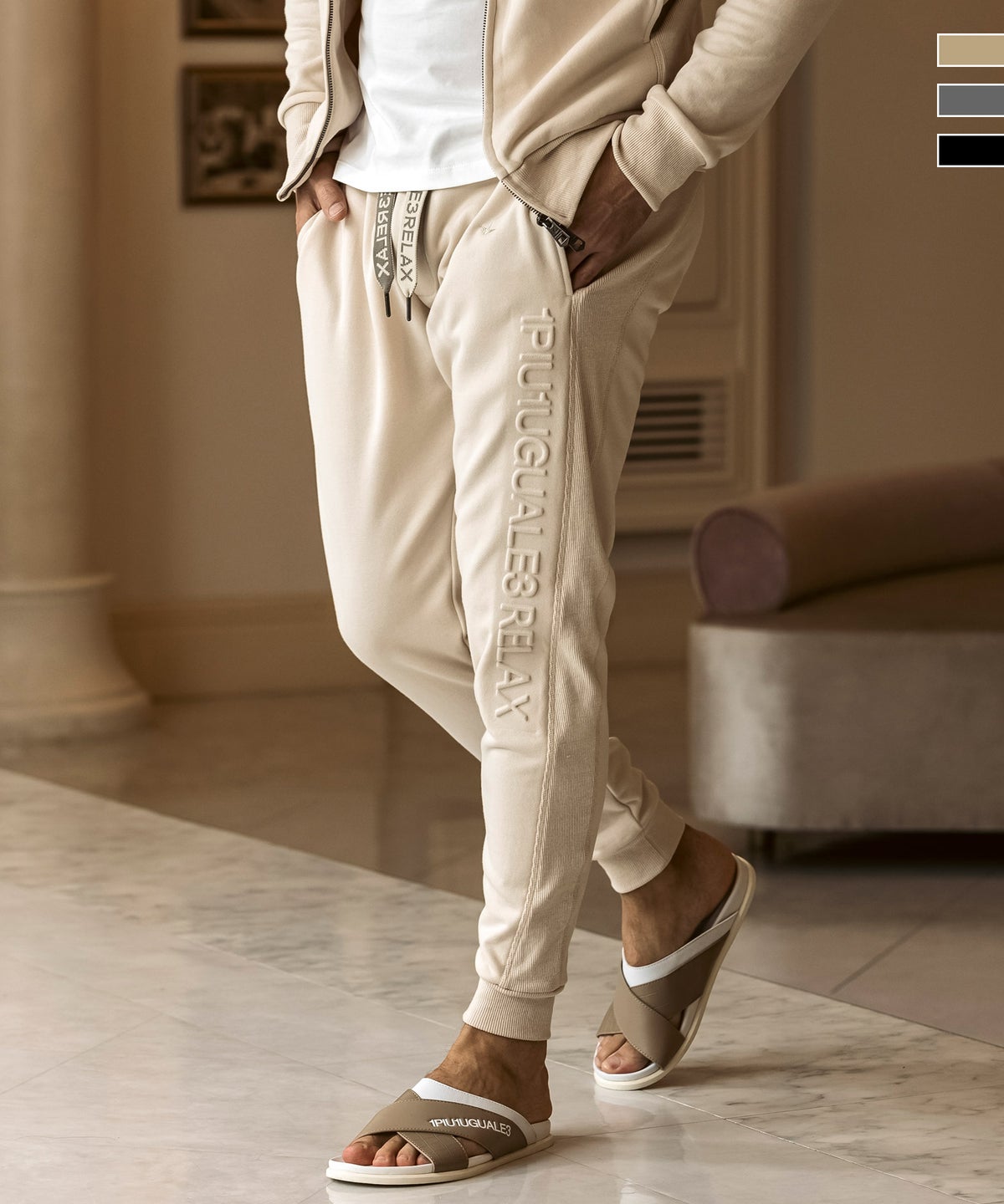 他の画像を見る 1PIU1UGUALE3 RELAX(ウノピゥウノウグァーレトレ リラックス)エンボスロゴスウェットジョガーパンツ 6月中旬お届け 予約商品 こちらは予約商品です ¥ 13,970 税込 お気に入りに登録する
