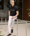 フロントにブランドロゴを配したベーシックなポロシャツ。