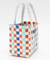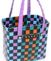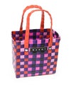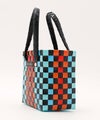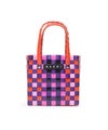 MARNIらしいビビッドなカラーが魅力のかごバッグ。職人がひとつひとつ編み上げた至極の逸品で、バスケット編みならではの立体感やフロントに添えたロゴもポイント。ミニサイズながらもたっぷりとマチ幅を確保して、収納力も十分。