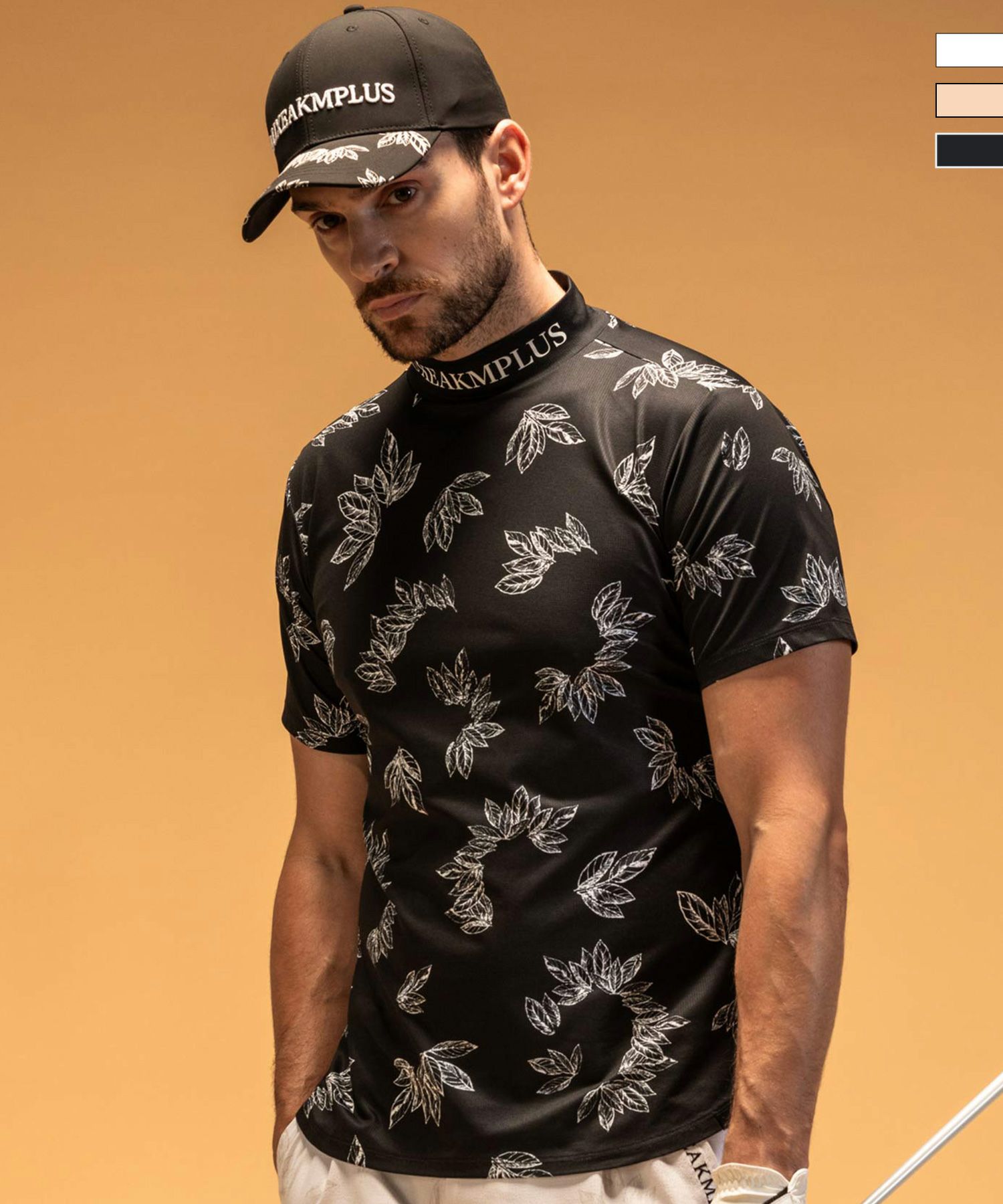LUXEAKMPLUS(リュクスエイケイエムプラス)ゴルフ ローレルパターン半袖モックネックTシャツ(吸水速乾 / UVカット)