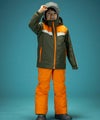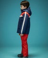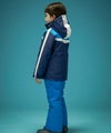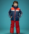 トリコロールカラーのコントラスト切り替えが、雪山で一際目立つスタイリッシュなデザインとなっており、元気いっぱいの子供たちにぴったりの遊び心を感じさせます。