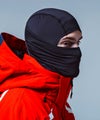 首元までしっかりカバーし、冷気の侵入を防ぐヘルメット対応バラクラバ。
