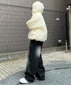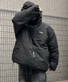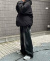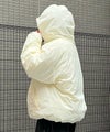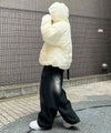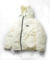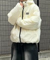 ILL'S(イルズ)ビッグシルエット ラバーワンポイントロゴ ナイロン コーデュロイ エコダウンジャケットフーディー