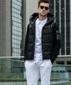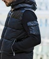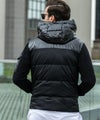 フードと左袖のポケットをシャイニー生地で切り替え。