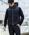 袖部分をニットで切り替えた中綿ジャケット。