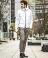 止水ファスナーにはブランドロゴを配置しスポーティな表情を演出。