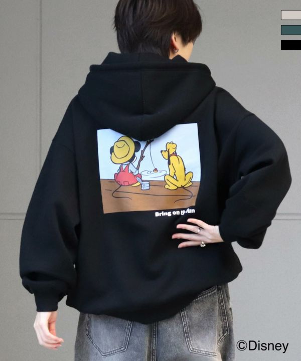 ILL'S(イルズ)Disney ディズニー ワンポイント刺繍 バックプリント ビッグシルエットプルオーバーフーディー パーカー ユニセックス