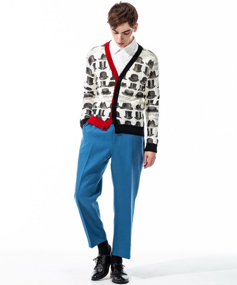 シルクハットのアートワークが特徴的なニットカーディガン。