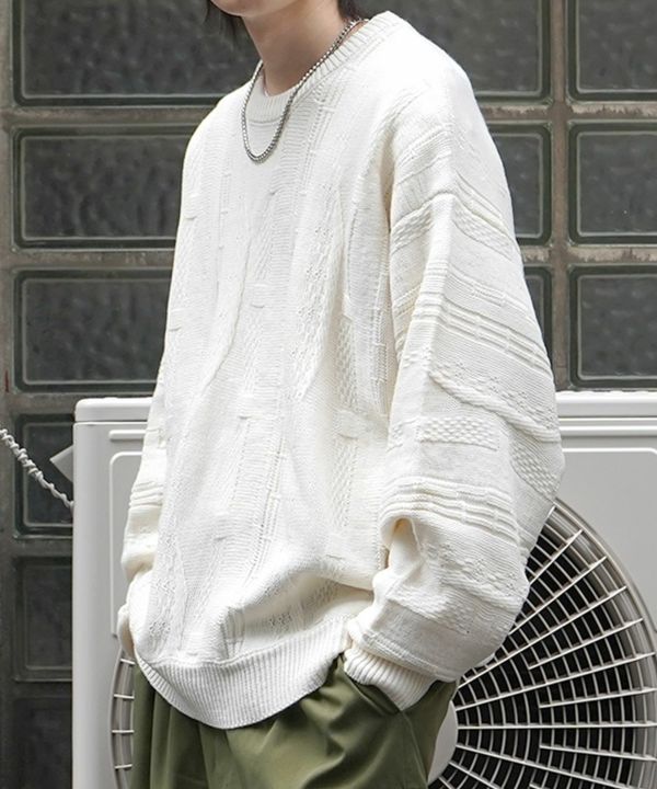 Confirm(コンファーム)ヴィンテージライク レトロジャガードストライプ柄 ビッグシルエット 3Dニットプルオーバー