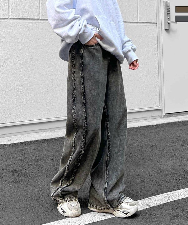 ILL'S(イルズ)【96thes SELECT】ヴィンテージライク サイドフリンジライン ワイドデニムパンツ