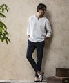サイドには凹凸のあるサーマル生地をV字に差し込みアクセントをプラス。
