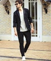 フロントのセンターシームが縦のラインを強調し、フォーマルかつスタイリッシュな仕上がりに。