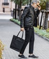 ノートPCもすっぽりと収まるサイズ感に加え、ミニマルなデザインはデイリーのみならずビジネスシーンにも適応します。