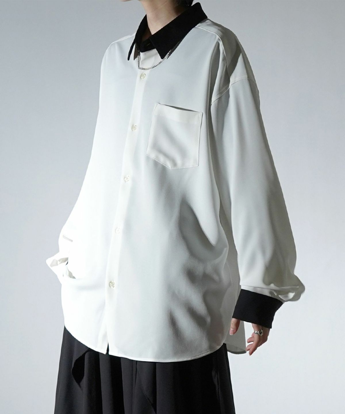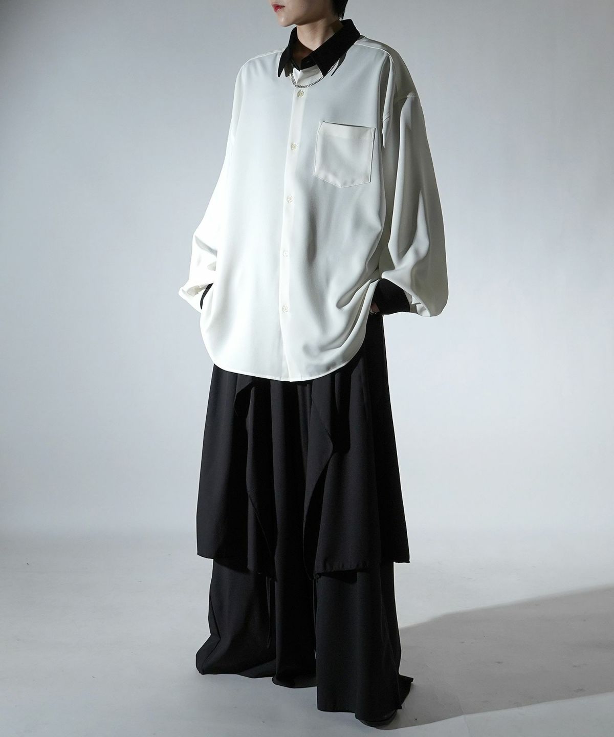 他の画像を見る SALE 24%OFF Confirm(コンファーム)アシンメトリーキリカエ / 襟配色クレリック ドレープとろみ ビッグシルエット長袖シャツ ユニセックス ¥ 5,940 ¥ 4,490 税込 お気に入りに登録する