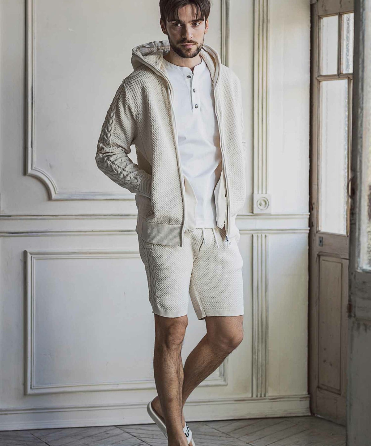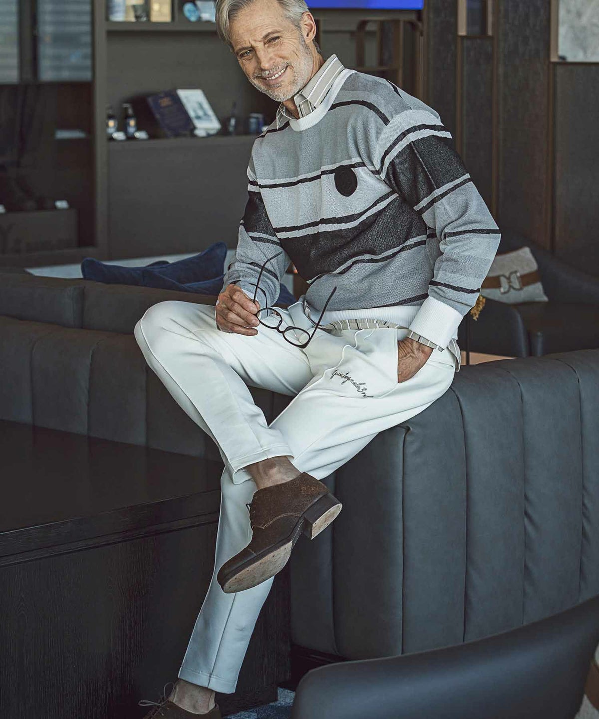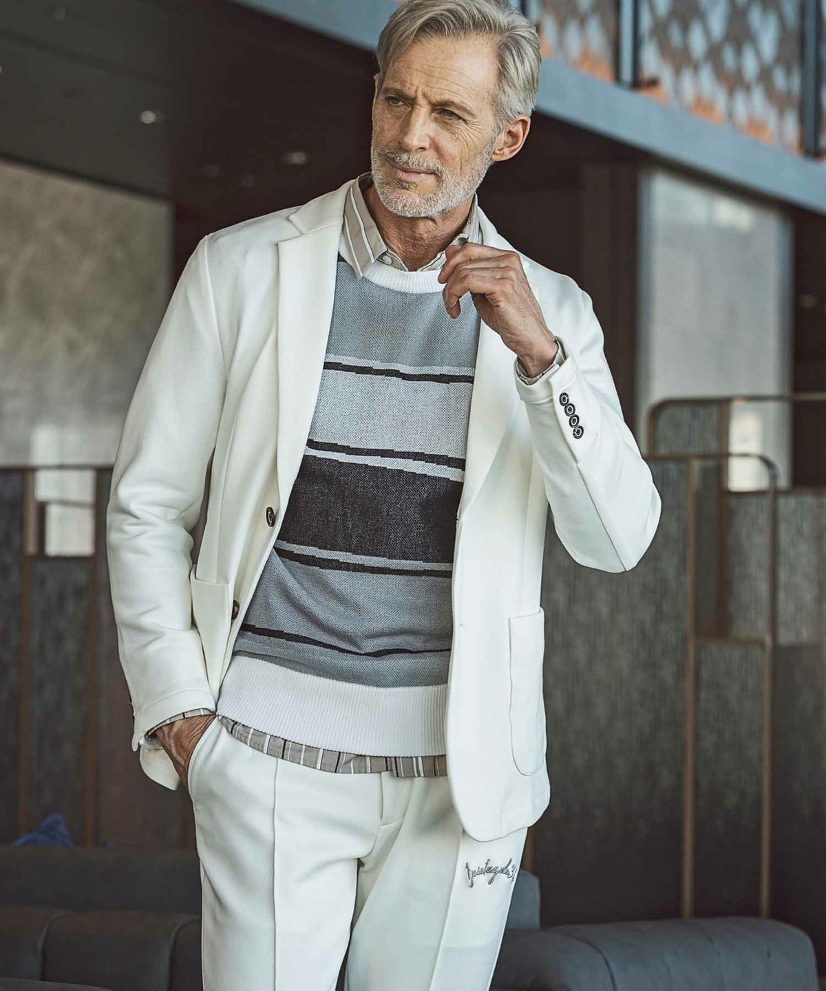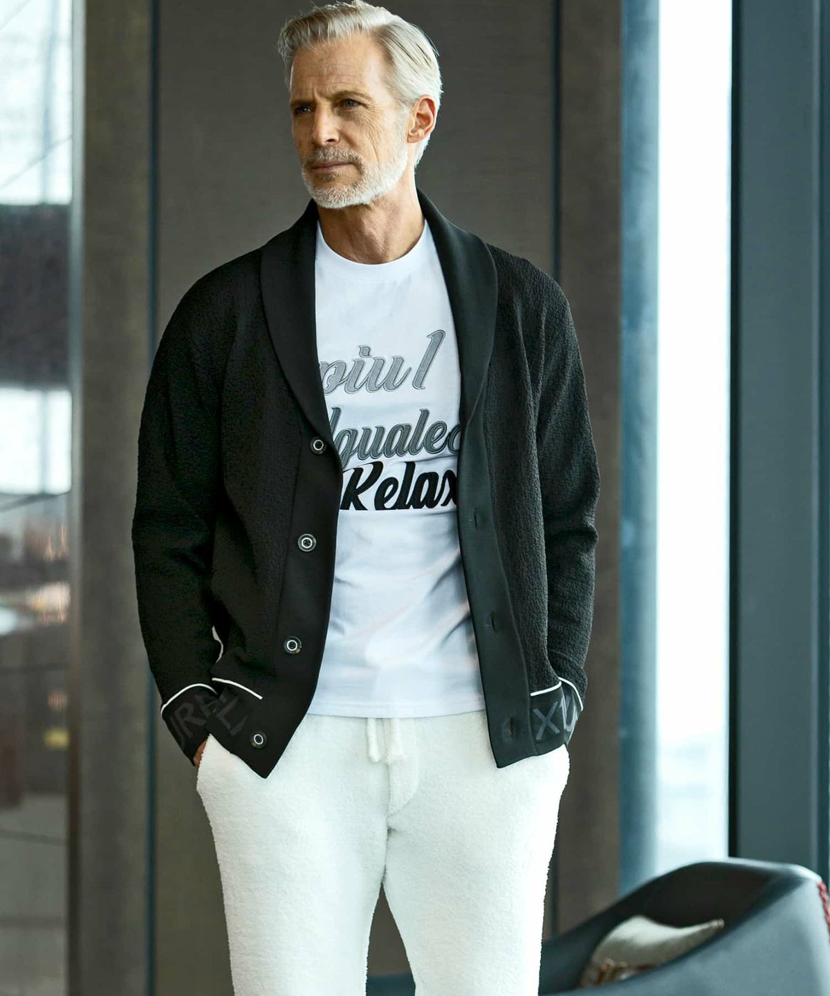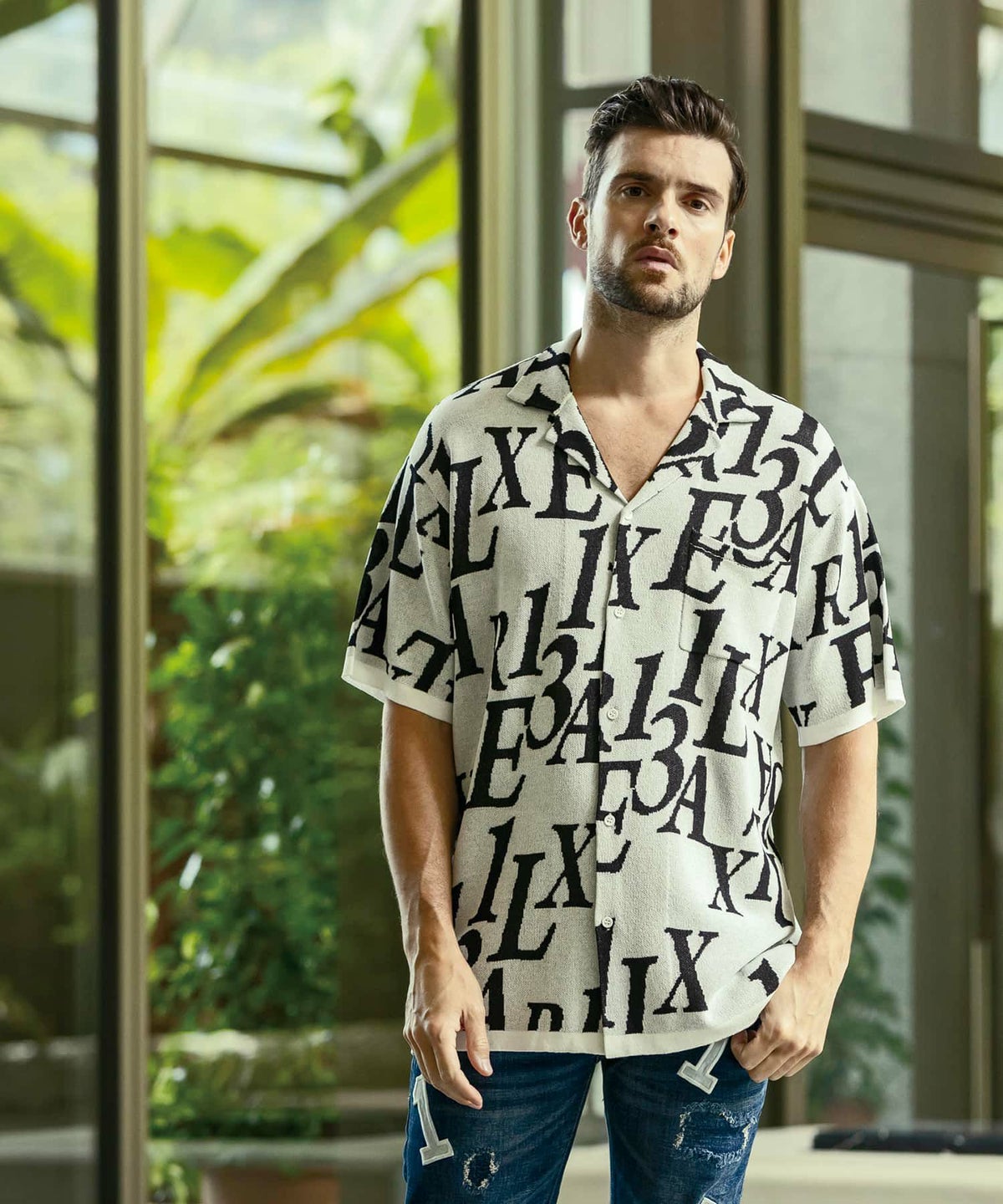 他の画像を見る SALE WEB/直営店限定 50%OFF 1PIU1UGUALE3 RELAX(ウノピゥウノウグァーレトレ リラックス)ロゴジャガードニット開襟シャツ ¥ 14,960 ¥ 7,480 税込 お気に入りに登録する