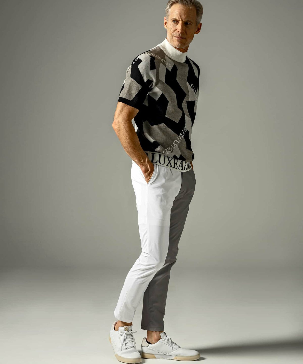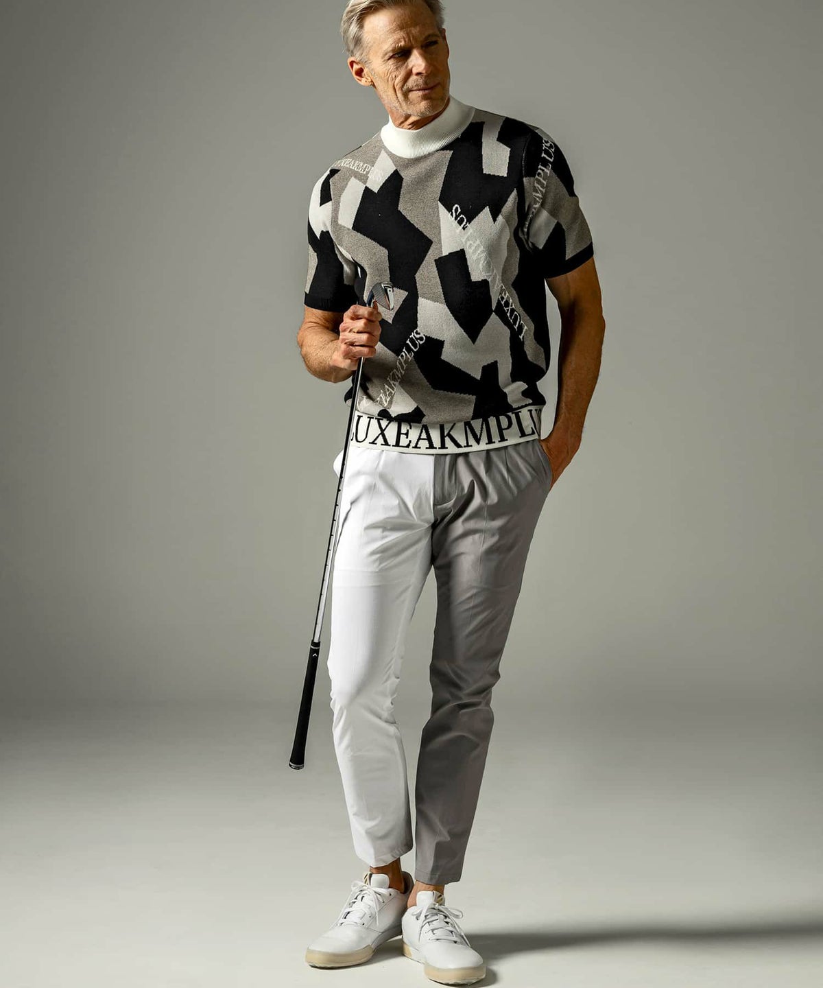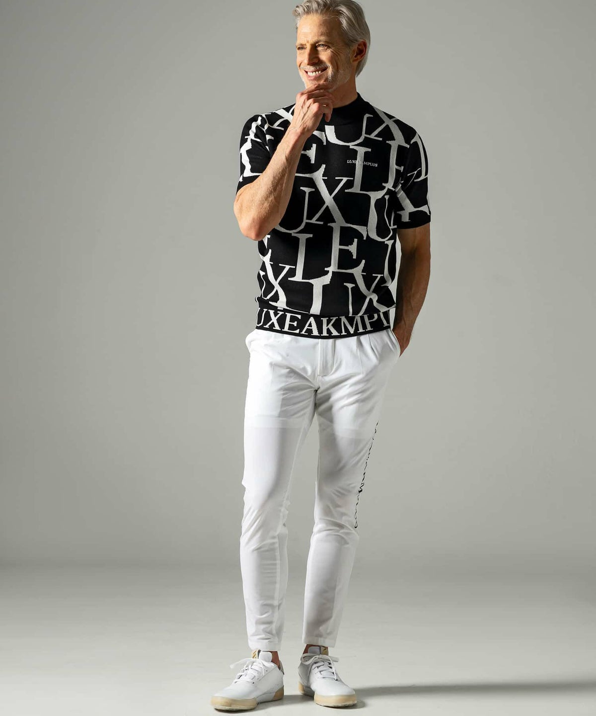他の画像を見る ゴルフ SALE 70%OFF LUXEAKMPLUS(リュクスエイケイエムプラス)ゴルフ 総柄ロゴ半袖モックネックニット ¥ 13,970 ¥ 4,191 税込 在庫切れ お気に入りに登録する