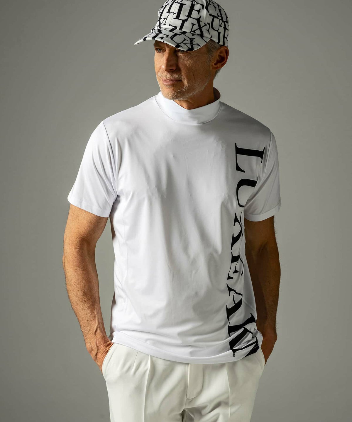 他の画像を見る ゴルフ SALE 65%OFF LUXEAKMPLUS(リュクスエイケイエムプラス)ゴルフ バーチカルロゴ半袖モックネックTシャツ ¥ 8,800 ¥ 3,080 税込 お気に入りに登録する