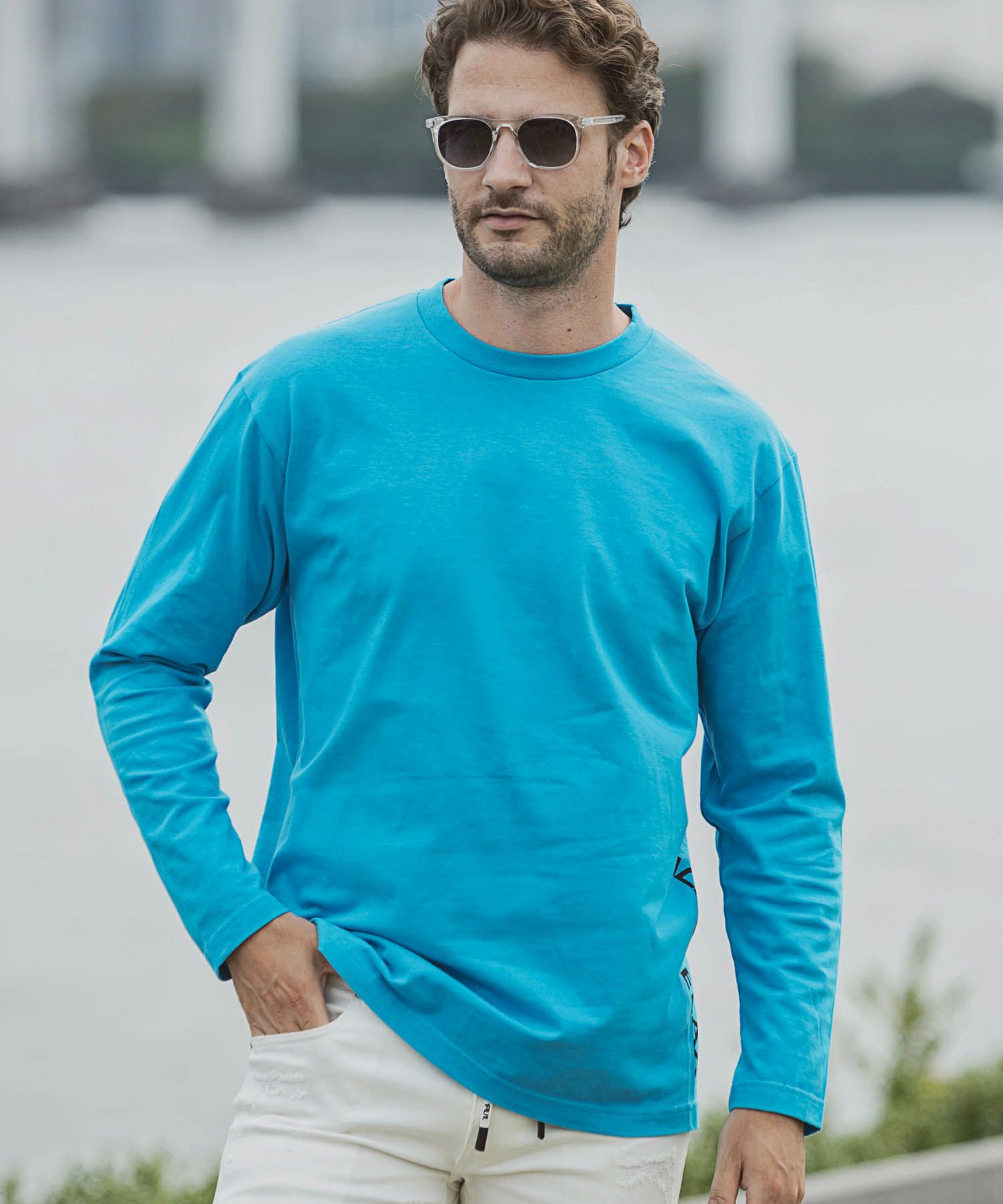 1PIU1UGUALE3 RELAX(ウノピゥウノウグァーレトレ リラックス)サイドロゴプリント長袖Tシャツ