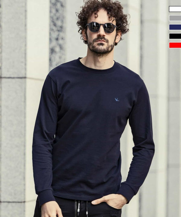 フロントに折り鶴を刺繍で配置した長袖Tシャツ。