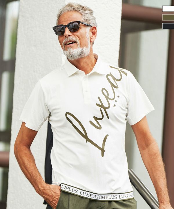 30%OFF LUXEAKMPLUS(リュクスエイケイエムプラス)ゴルフ カーシブロゴ半袖ポロシャツ(吸水速乾 / UVカット)