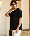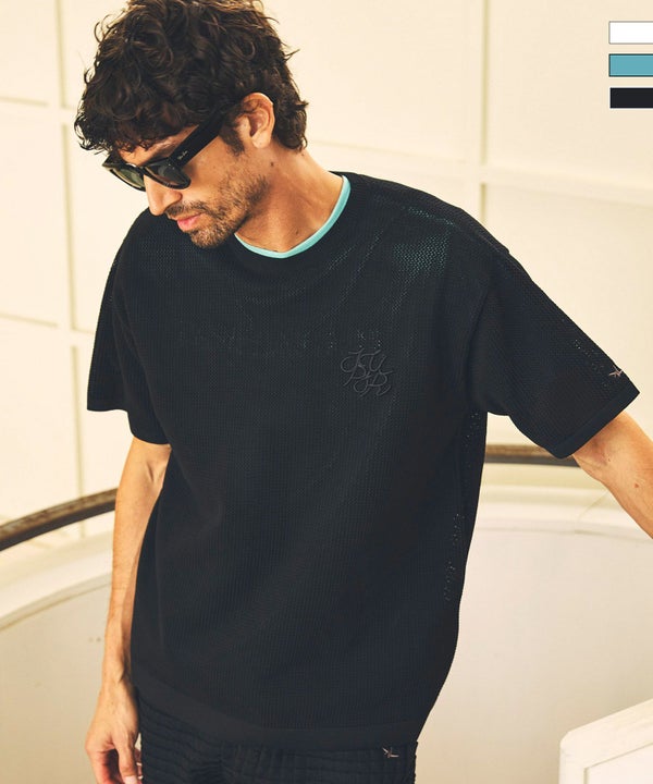 程よい膨らみとドライで肌触りの良い素材感で仕上げたニットTシャツ。