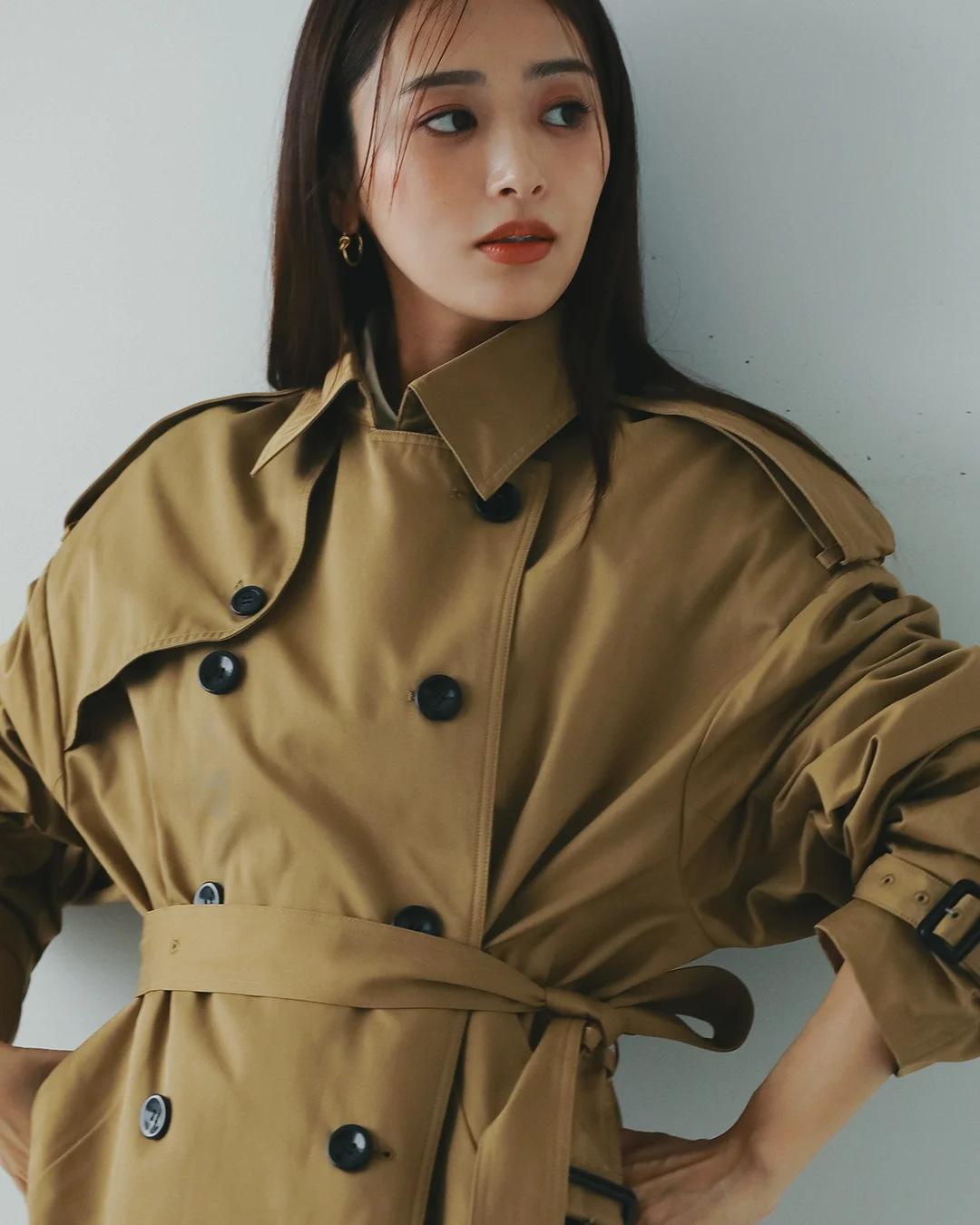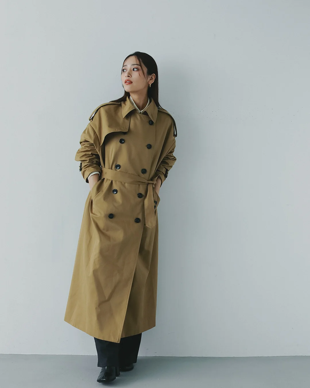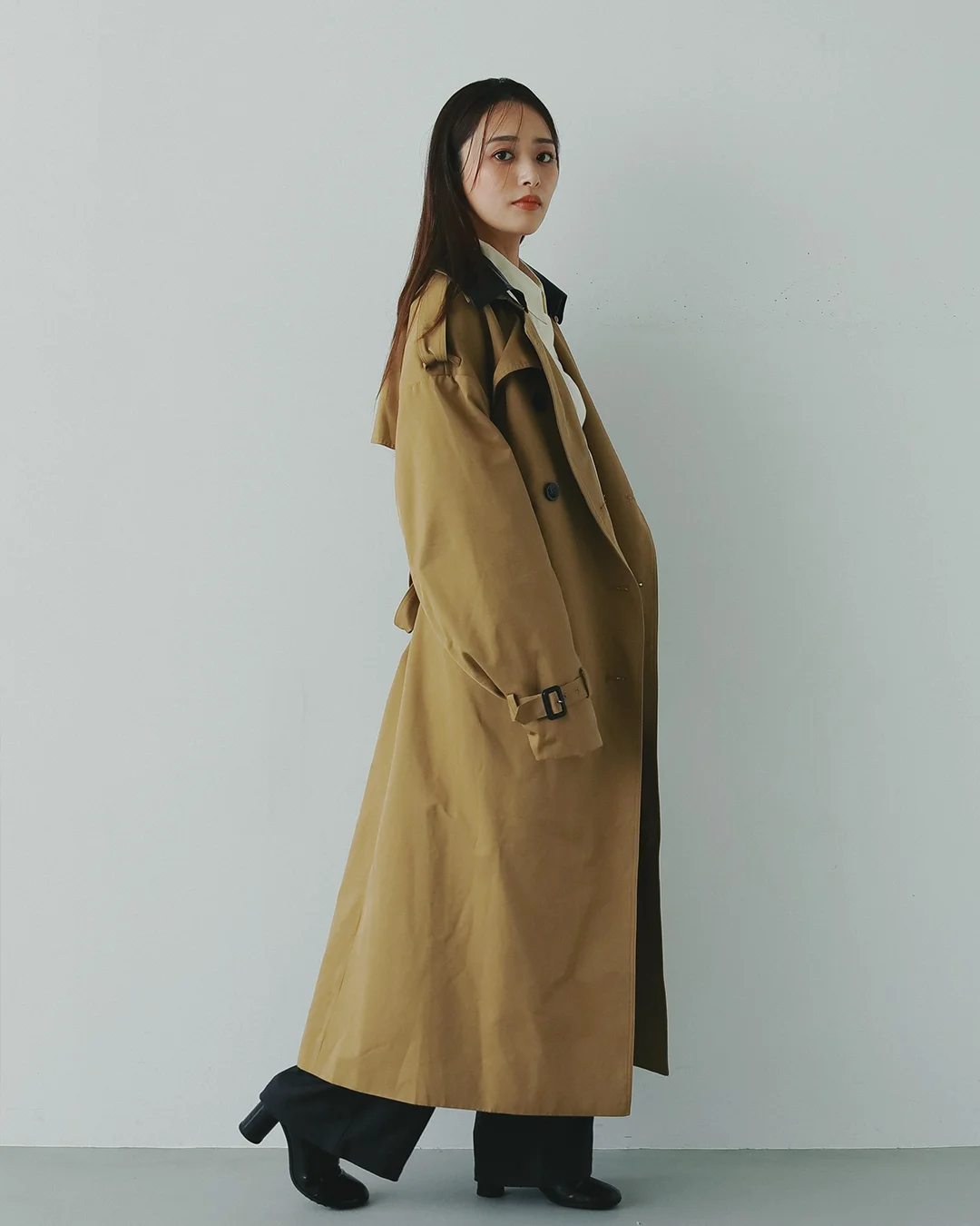 伝統的なトレンチコートの型を生かしつつ、少しボリューム感をだしたトレンド感のある立体シルエットが、1枚でスタイリングの主役になる存在感を放ちます。