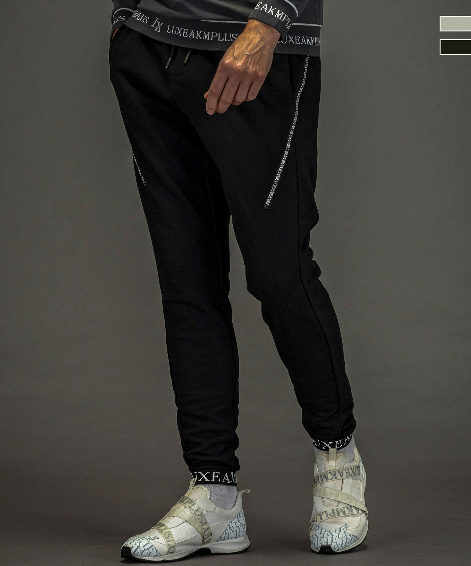 ラインストーンジップロゴパンツ