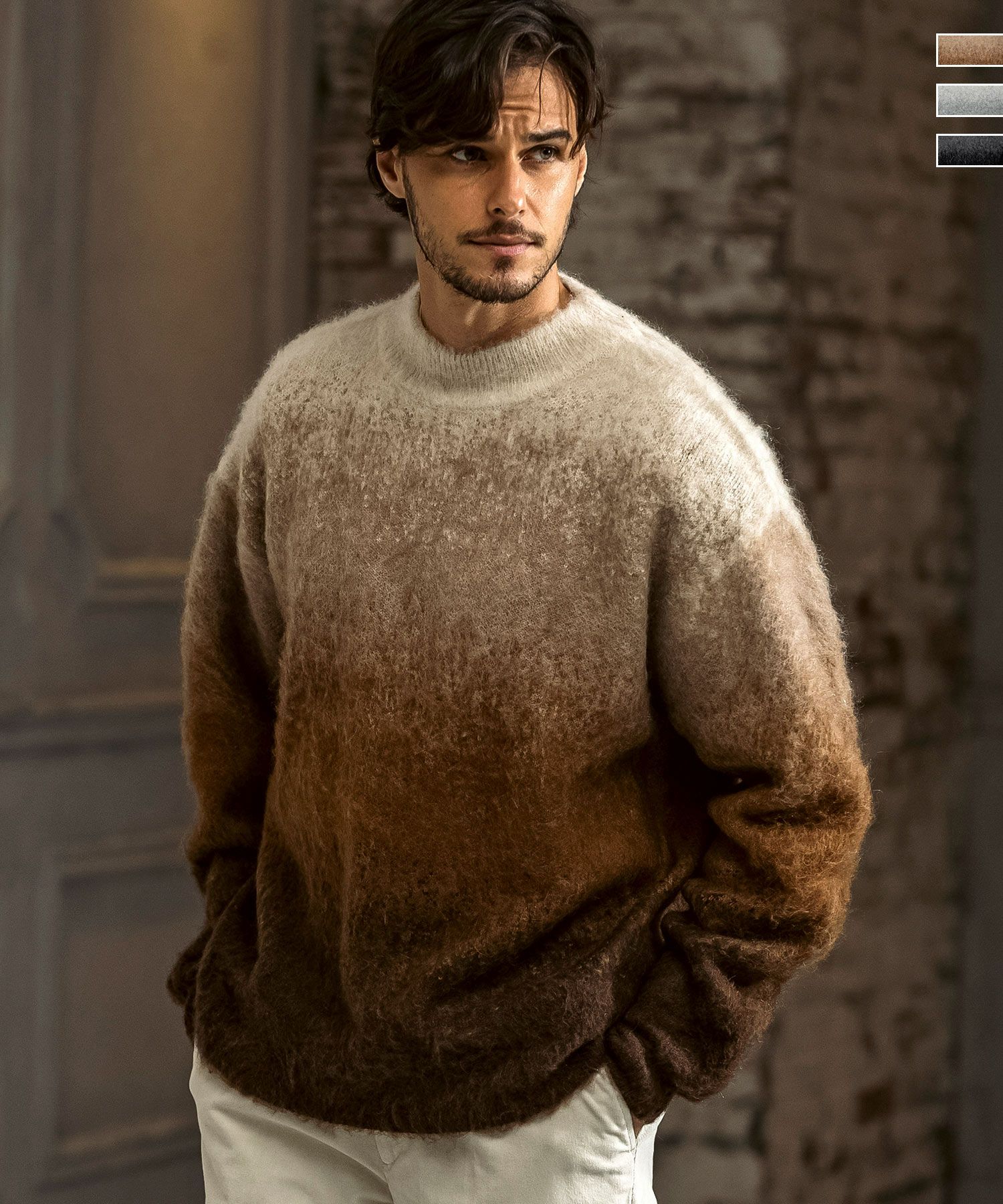 グラデーションモヘアクルーネックニット