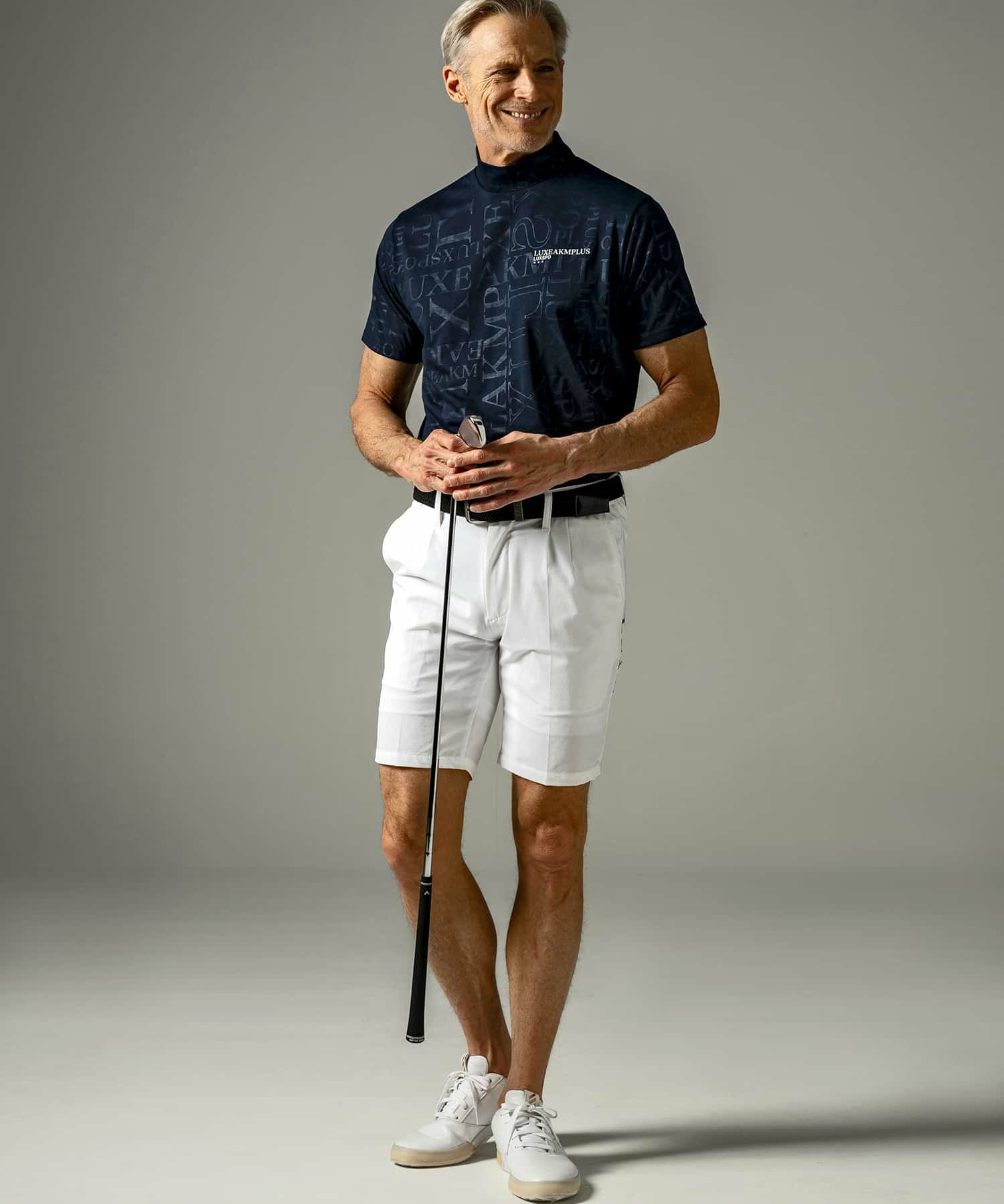 他の画像を見る ゴルフ SALE タイムセール60%OFF LUXEAKMPLUS(リュクスエイケイエムプラス)ゴルフ 総柄ロゴ半袖モックネックTシャツ ¥ 9,680 ¥ 3,872 税込 お気に入りに登録する